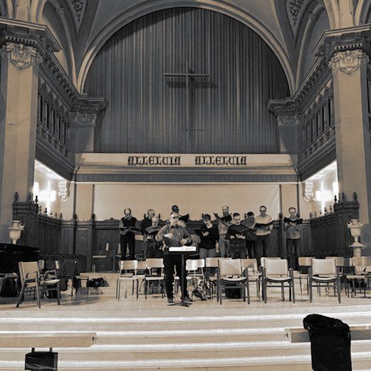 Sous la direction du chef de chœur Andreï Bedros, une quarantaine de choristes interprètent des œuvres du grand répertoire de l’art choral